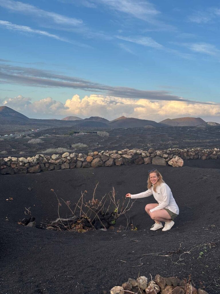 The winery region of La Geria sits just beyond Timanfaya National Park and is one of Lanzarote’s most striking landscapes. The volcanic ash fields where vines are planted in hand‑dug pits and protected by low stone walls, a method that makes the island’s Malvasía wines so distinctive. After our visit to the park, we stopped at Bodega Stratvs, a modern winery in La Geria where you can join a guided tour to learn about how wine is made here and taste local bottles surrounded by volcanic scenery (book your time slot ahead of time online). For lunch, we headed to Restaurante Grill Casa Satorno, a highly‑rated local grill that served one of the most delicious meals we had on our last trip. The combination of dramatic wine‑country views and excellent food made it a really memorable stop after exploring Timanfaya and the vineyards.