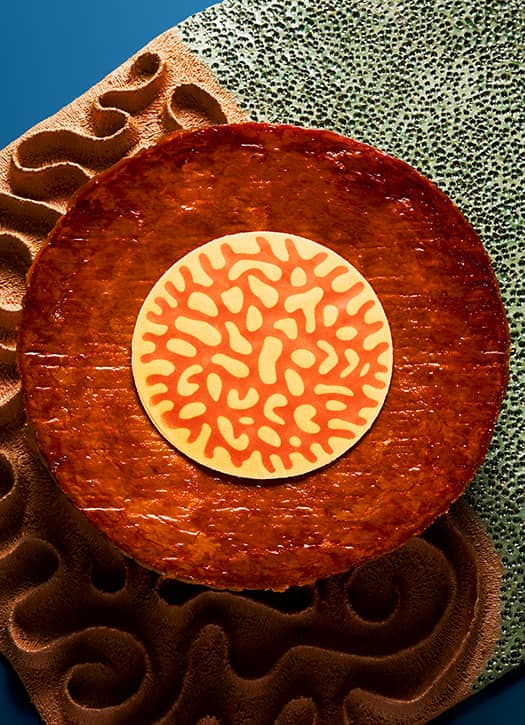 This year, his Galette des Rois is inspired by a pain perdu (French toast). This galette features inverted puff pastry and a soaked brioche dough that is incredibly soft. Pierre Hermé galettes are available from his Paris boutiques and via pre-order during January.